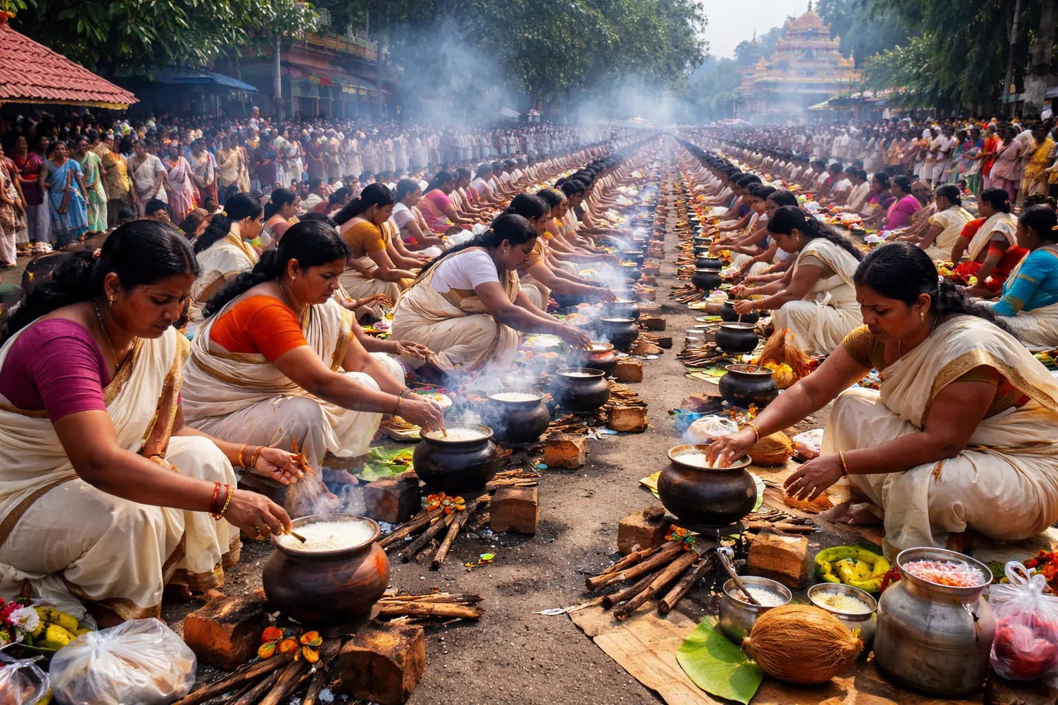 तिरुवनंतपुरम: केरल की राजधानी तिरुवनंतपुरम में हर वर्ष आयोजित होने वाला अट्टुकल पोंगाला पर्व एक बार फिर श्रद्धा और परंपरा के साथ मनाया गया। इस आयोजन को दुनिया में महिलाओं के सबसे बड़े धार्मिक जमावड़ों में से एक माना जाता है। हजारों-लाखों महिलाएं अट्टुकल भगवती मंदिर के आसपास एकत्र होकर देवी को पोंगाला अर्पित करती हैं, जो चावल, गुड़ और नारियल से तैयार किया जाने वाला पारंपरिक प्रसाद है।